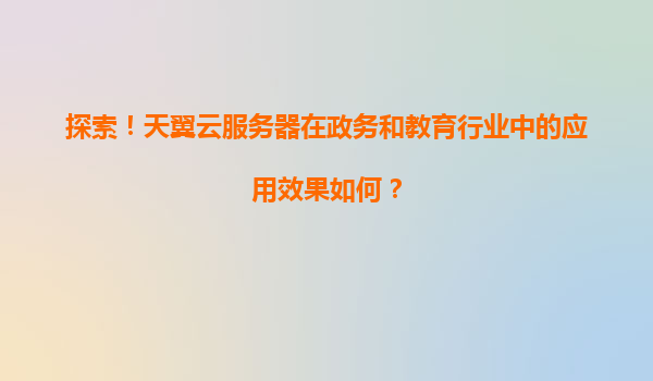 2025-11-11探索!天翼云服務器在政務和教育行業中的應用效果 一、引言 隨著數字化浪潮的推進,云計算技術成為支撐政務與教育行業轉型的核心基礎設施。中國電信旗下的天翼...