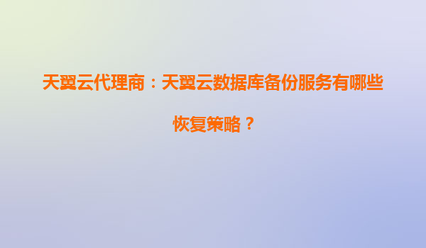 2025-04-08天翼云數據庫備份服務的恢復策略與代理商優勢解析 一、天翼云數據庫備份服務概述 隨著企業數字化轉型的加速,數據已成為核心資產。天翼云數據庫備份服務(CTYunDatabaseBackupService)通過全生命周...