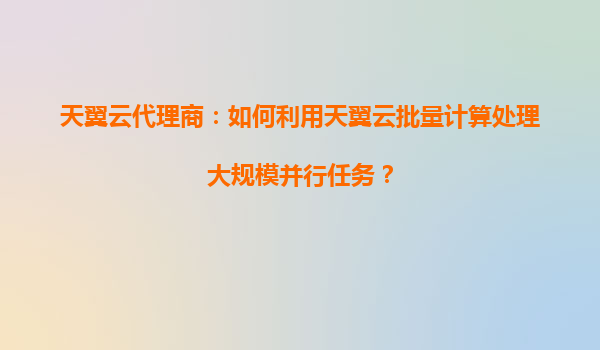 2025-04-04天翼云代理商:如何利用天翼云批量計算處理大規模并行任務? 一、天翼云批量計算的核心優勢 天翼云作為中國電信旗下的云服務品牌,其批量計算服務(BatchCompute)憑借以下核心優勢成為處理...