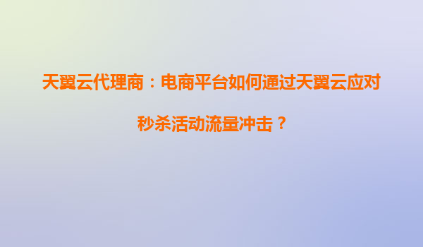 2025-04-01天翼云代理商:電商平臺如何通過天翼云應對秒殺活動流量沖擊? 一、電商秒殺活動的技術挑戰與天翼云優勢總覽 電商平臺的秒殺活動常面臨瞬時流量激增、服務器負載過高、數據庫訪問瓶頸、網絡延遲及...
