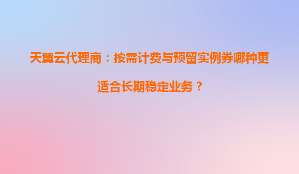 2025-04-01天翼云代理商:按需計費與預留實例券的長期業務適配分析 一、長期穩定業務的資源需求特點 長期穩定業務通常具有以下特征: 1.資源使用量可預測性強,流量波動較小; ...