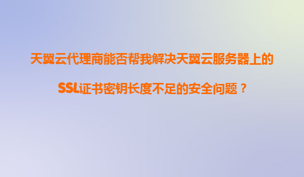 2025-11-07天翼云代理商:助力企業解決SSL證書密鑰長度不足安全難題 一、SSL證書密鑰長度不足的安全隱患 在數字化時代,SSL證書作為保障網站數據傳輸安全的核心工具,其密鑰長度直接決定了加密強度...