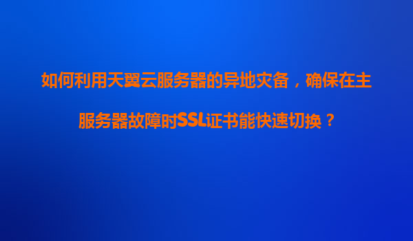 2025-11-07如何利用天翼云服務器的異地災備實現SSL證書快速切換 一、異地災備的核心價值 在數字化時代,業務連續性成為企業的核心需求。異地災備通過地理隔離的備份系統,確保在主服務器遭遇自然災害、網絡攻擊或硬件故障...