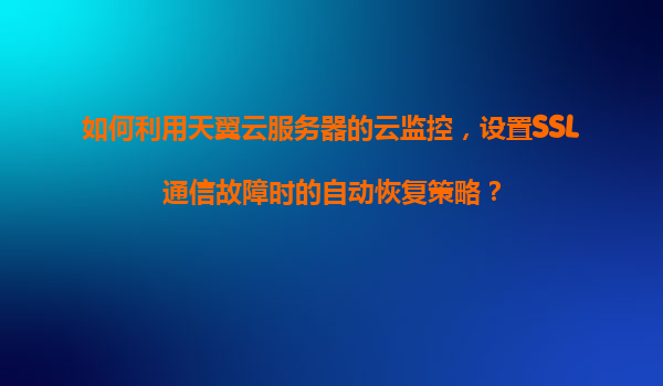 2025-11-07如何利用天翼云服務器的云監控設置SSL通信故障自動恢復策略 天翼云服務器的核心優勢 在探討具體方案前,首先需要了解天翼云服務器的核心優勢。作為中國電信旗下的云計算...