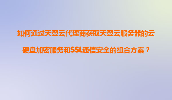 2025-11-07如何通過天翼云代理商獲取天翼云服務器的云硬盤加密服務與SSL通信安全組合方案 一、方案背景與核心價值 隨著企業對數據安全的重視度提升,云服務器中的云硬盤加...
