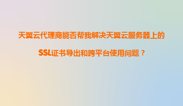 2025-11-07天翼云代理商能否幫我解決天翼云服務器上的SSL證書導出和跨平臺使用問題? 在當前快速發展的互聯網時代,數據安全和服務器的穩定性成為了企業運營的重要基礎。SSL證書作為保障數據傳輸安全的關鍵組件,其管理和...